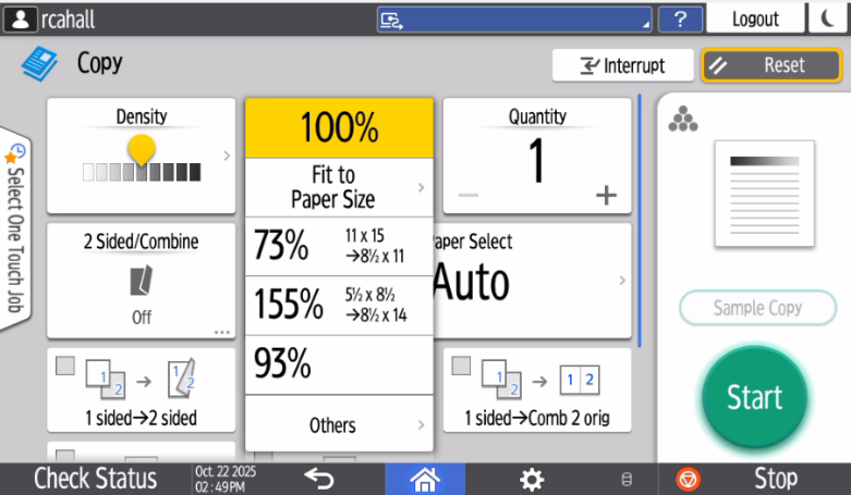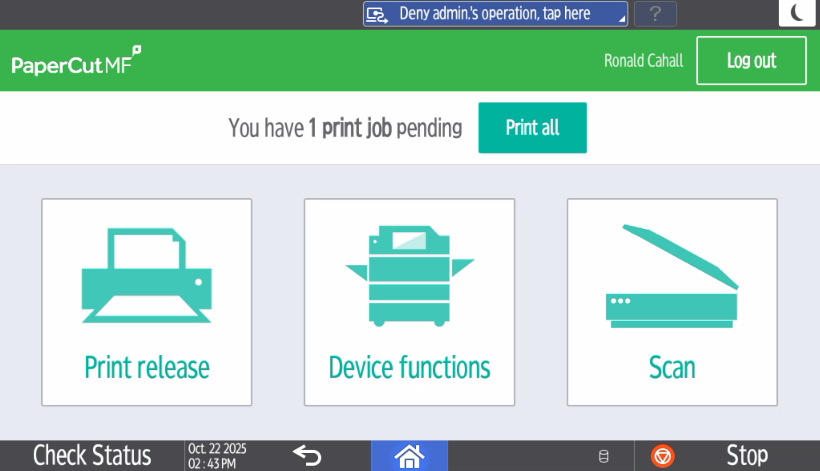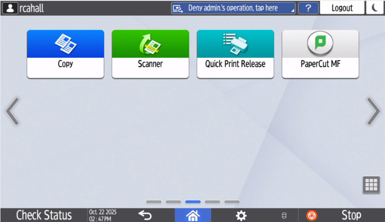 Papercut is a print-pooling technology that allows you to print to a single print queue and then pick up your print job from any Ricoh device on-campus. You can also use this system for scanning and coping documents. Please see the guide below for more information.