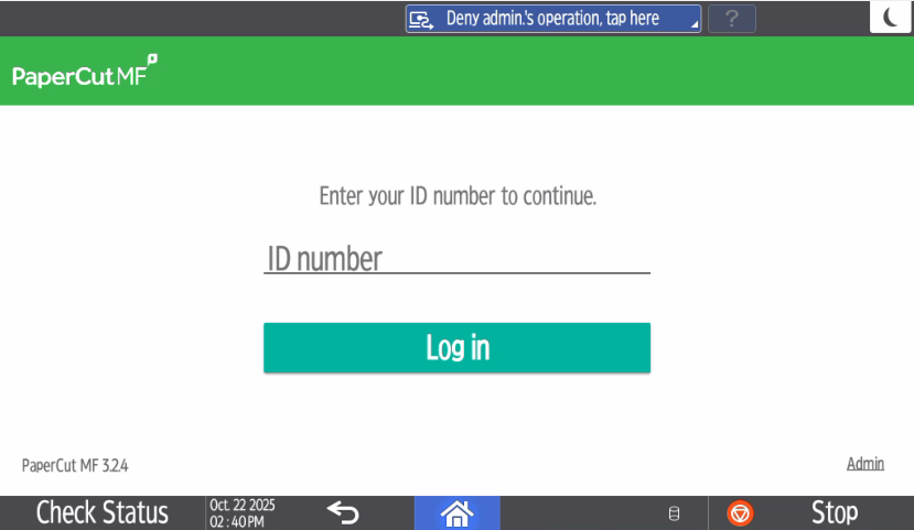 Touch the ID Number section of the touch screen. A keyboard will appear; enter your College ID Number. Then tap Login. |