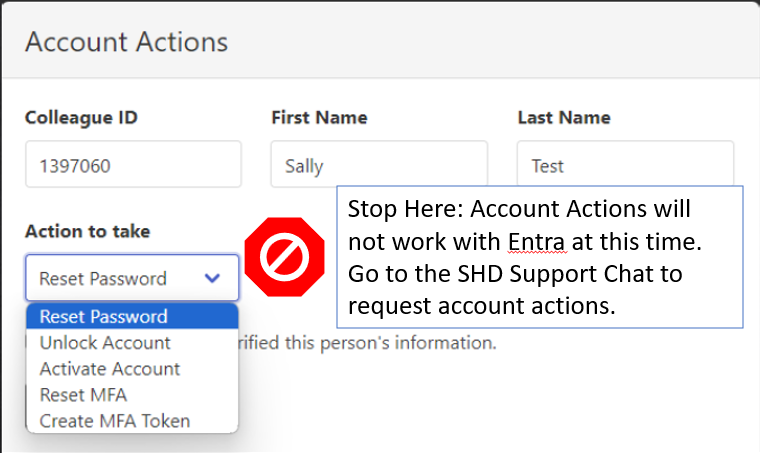 - Once the account action has been performed, reply to the original chat thread letting the SHD rep know the action has been completed.