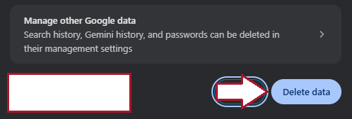 - Once selected click the "Delete data" button to finish the process. (See Below Image)